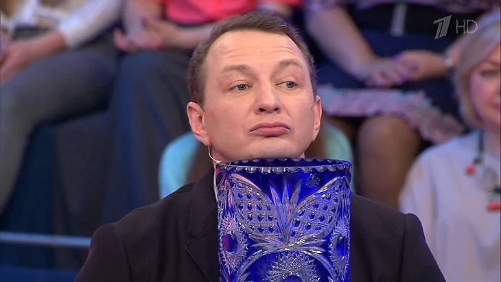 Башаров: «Я сегодня не с пустыми руками, принес в студию – как в хоккее есть Кубок Стэнли, так у нас в «Ледниковом периоде» есть такой кубок. Его нам с Таней Навкой подарили. Была пара, а кубок один, но Таня благородно отдала его мне. Это первый кубок в моей жизни, уже 8 лет я его храню дома».