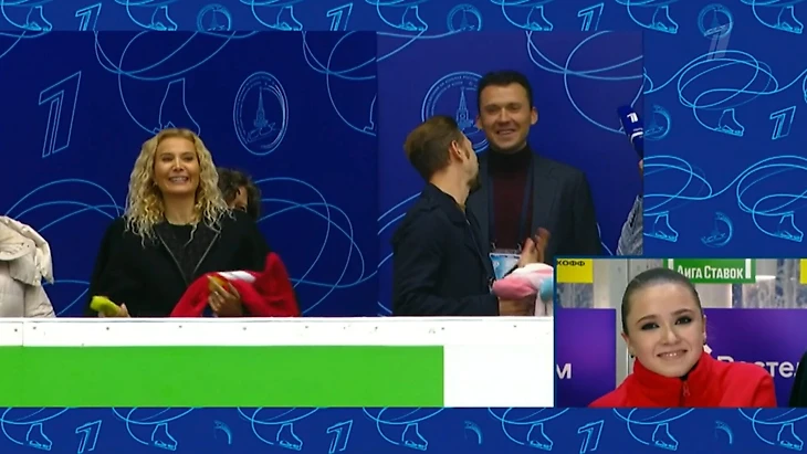 Зато развеселила зрителей, среди которых был и певец Ваня Дмитриенко – недавно Валиева снялась в его клипе. Его настойчиво показывали в трансляции.