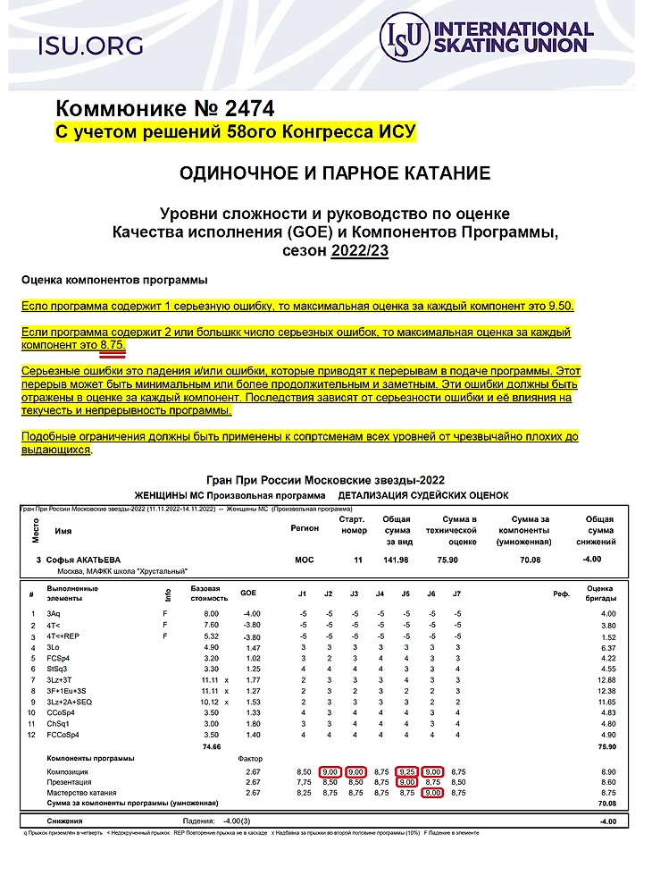 Более того, максимальная оценка 8.75 - это всё же для двух падений, а за третье предполагается, что надо вычесть ещё. На семинарах создатели правил говорят - ещё минус 0,5 за третье падение (как за первое после вычитания за первые два).