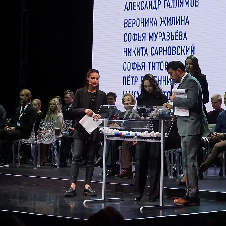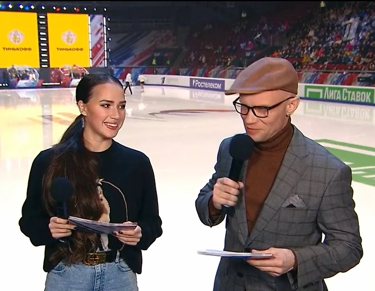 Алина Загитова была ведущей этого спортивного состязания, вместе с Дмитри́ем Хрусталевым и Максимом Траньковым!
