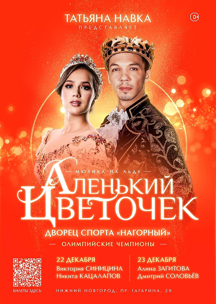 Внимание, новая информация! 23 декабря в Нижнем Новгороде состоится ледовое шоу «Аленький цветочек» с Алиной Загитовой и Дмитрием Соловьёвым. Билеты https://tickets.nizhny800.ru/events/47
