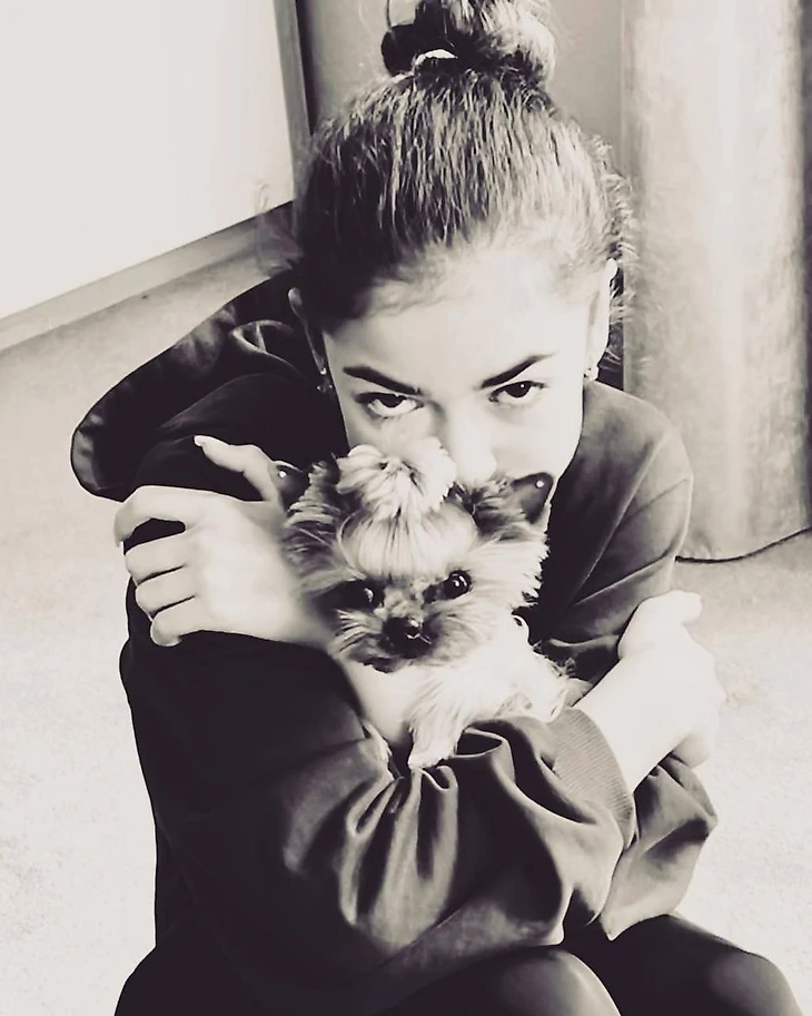 Тиффани Загорски и её милая собачка. Собачка на хитренькую лисичку похожа. И хочет от хозяйки получить себе хорошенького или вкусненького. А хозяйка видимо шепчет ей на ушко " будет тебе всё от меня, милая. Я тебе - всё сделаю!". Моя фантазия такая. Но картина - очень тёплая и душевная.
