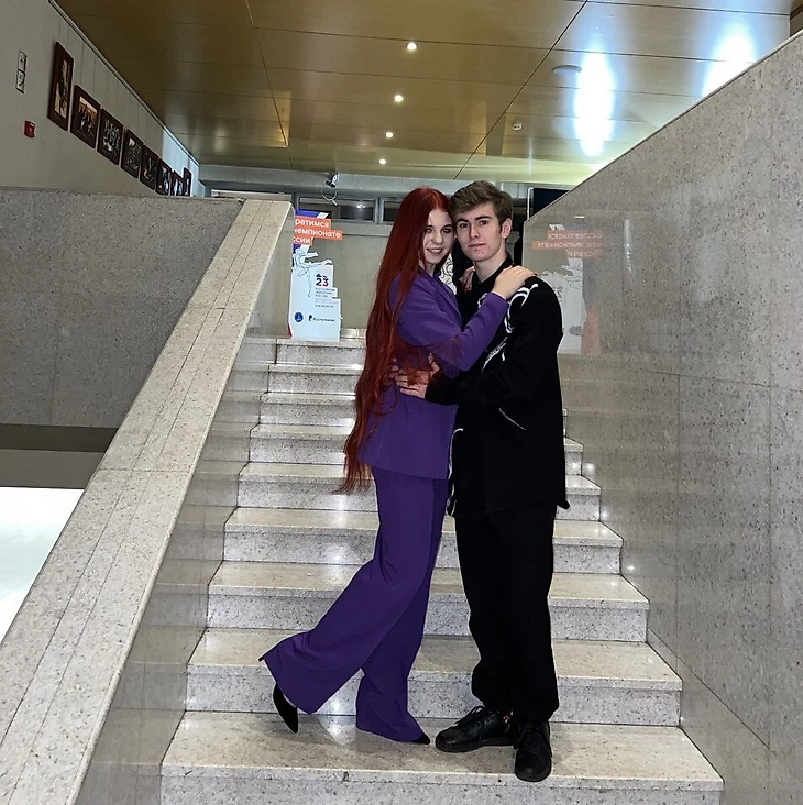 Их конкуренты в борьбе за титул чемпионов России в паре – Анастасия Мишина и Александр Галлямов – оделись довольно консервативно. На Насте – бордовое платье с рукавами, на Саше – синий костюм. Тамара Москвина – в тренде: черный пиджак с брюками.