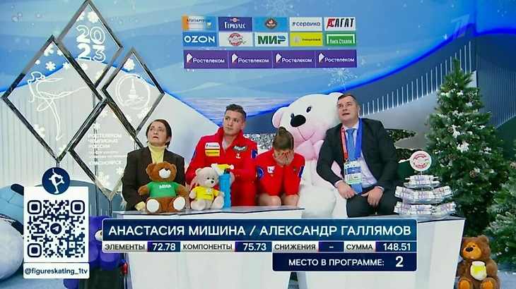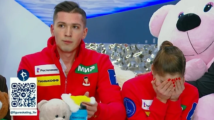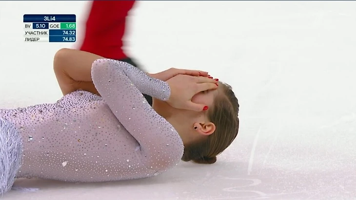 Мишина поняла ситуацию мгновенно: после проката лежала на льду, закрыв лицо руками, подняться ей помог Галлямов.