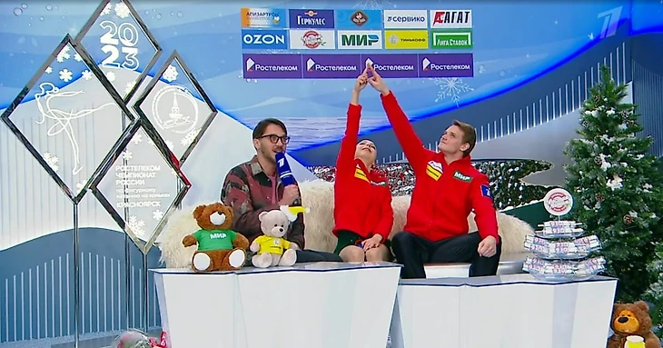 Бойкова и Козловский тоже расплакались в эфире, но уже от радости – он стали двукратными чемпионами России.