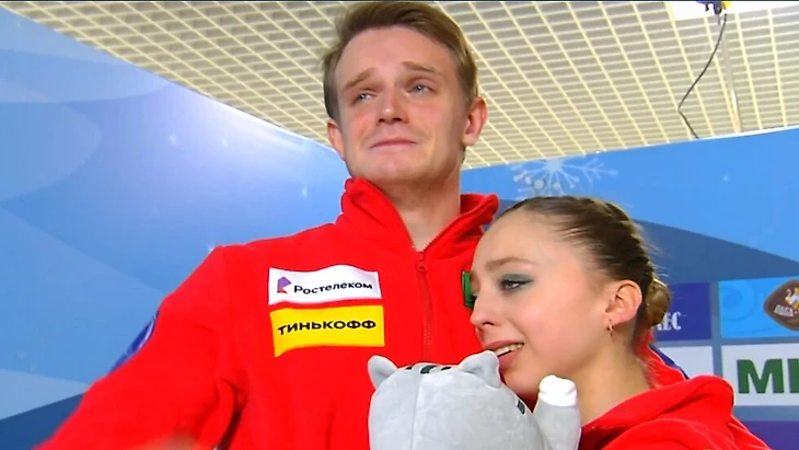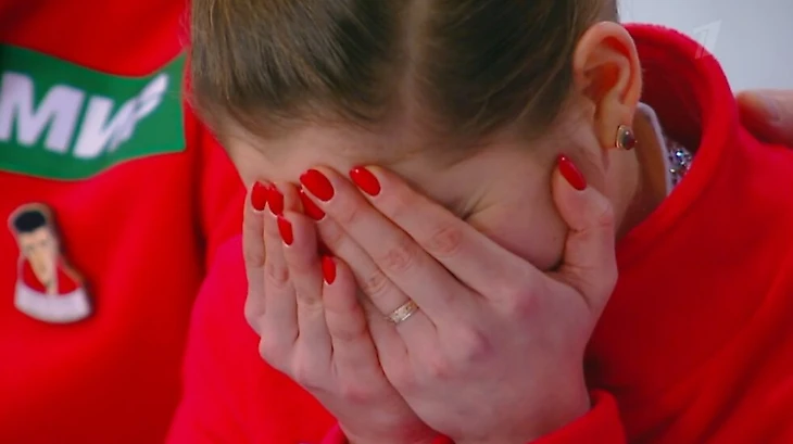 Как только выставили оценки за произвольную (148,51 балла против 150,07 у Бойковой и Козловского), Мишина опять закрыла ладонями лицо и расплакалась.