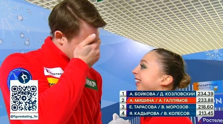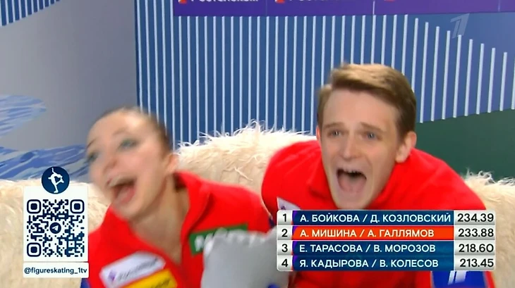 История повторяется: в прошлый раз они выиграли ЧР тоже в Красноярске (в декабре 2019-го) и тоже с подобным преимуществом – в 0,47 балла от Тарасовой и Морозова. Мишина и Галлямов тогда закончили четвертыми.