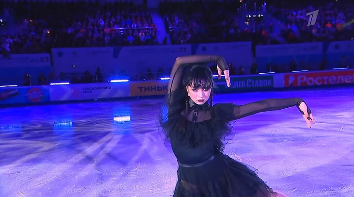 Что тема с Уэнздей популярна, говорит еще и то, что на показательных в Красноярске номер Валиевой – не единственный про девочку из семейки Аддамс. За несколько минут до Камилы на лед выходили Елизавета Шанаева и Павел Дрозд в образах из сериала.