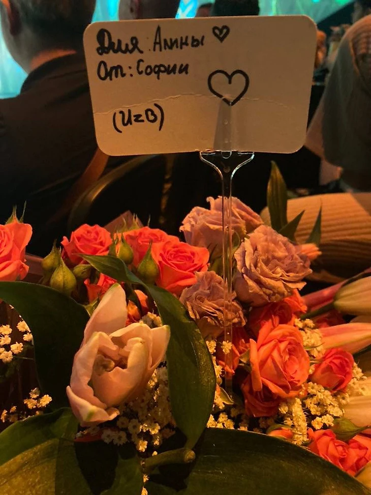 Они подарили Алине цветочки и им удалось сфотографироваться с ней😌