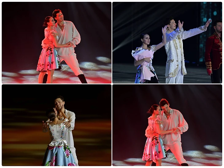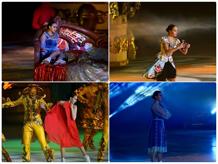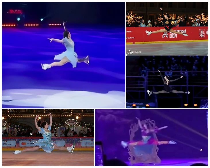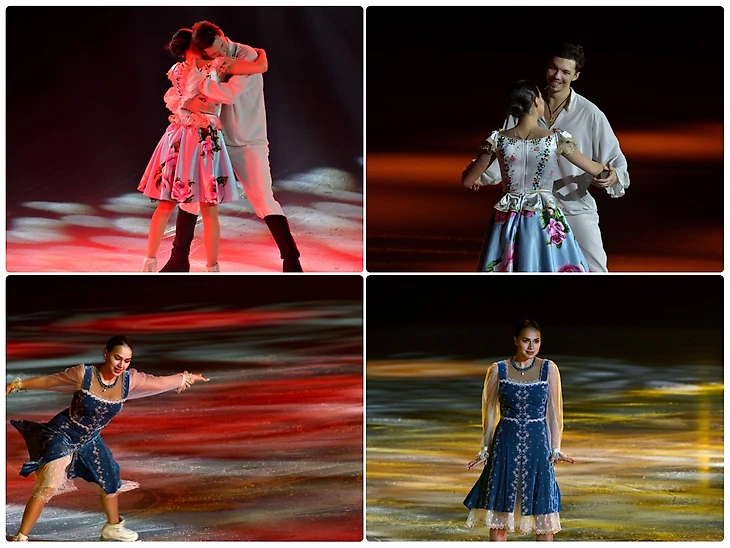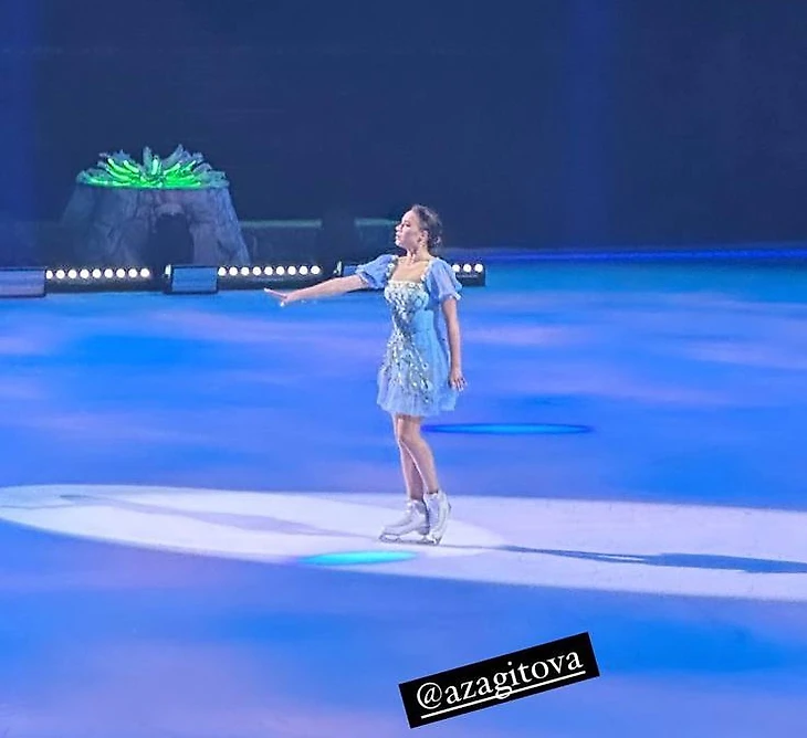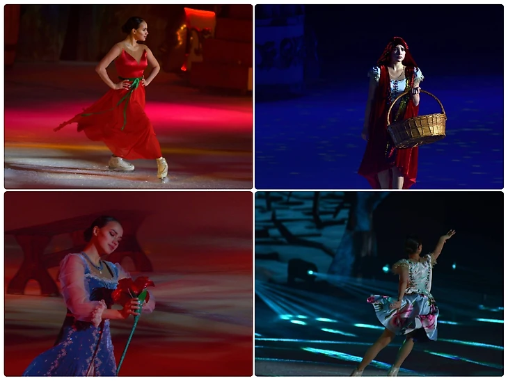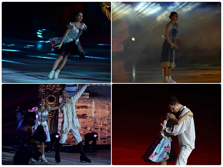 Так интересно наблюдать за тем, как растет Алина как артистка! Но также, не менее интересно наблюдать и за тем, как Алина держит форму и как спортсменка, выступающая в шоу. А ведь это, на минуточку, не соревнующаяся уже более трёх лет спортсменка! Потрясающе, но мы видим, что скольжение и скорость катания у Алины такие, что партнёрам очень трудно угнаться за ней. А непрыжковые элементы (дуги, спирали, вращения, дорожки шагов) до сих пор на высоте, впору равняться многим соревнующимся спортсменам и брать мастер-классы у Алины. Ну и прыжки, которые демонстрирует Алина, тоже хороши! Все дни шоу, что в Сочи, что в Дубае, Алина нам показывала великолепные аксели, лёгкие, красивые! Ну, а в прыжок в шпагате Алины лично я влюблена, и он тоже - на высоте! Легка, грациозная, очень профессиональна во всём - вот такая наша Алина!