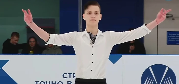 Матвей сегодня исполнял все элементы изумительно! Он выполнил в первой половине 3 Аксель и 4 Тулуп. Во второй половине был каскад 3Лутц+3Риттбергер.