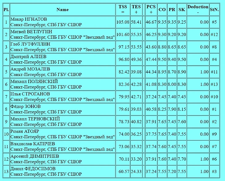 Сильный прокат Игнатова и эффектный Ветлугин: итоги коротких программ мужчин на чемпионате Санкт-Петербурга