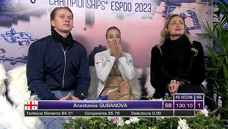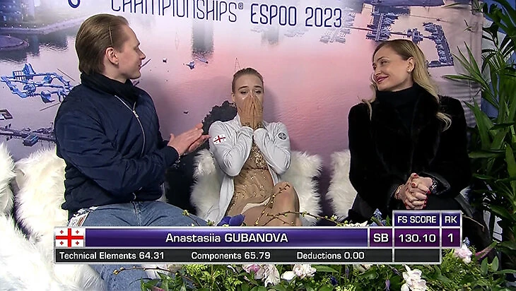 «Без русских на чемпионате Европы не получилось, не обошлось. Снова золото за нами», – радовалась Лина Федорова, комментирующая турнир вместе с Евгенией Медведевой на Okko. Губанова в это время снова заплакала.