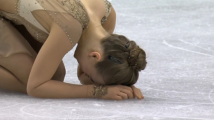 Следом выступала Губанова – она тоже уступила Репонд по технике. Все из-за ошибки на флипе – его понизили до двойного, а приземление получилось смазанным. Но это – единственная помарка за все выступление. Сразу после финальной позы Анастасия рухнула на лед и заплакала.