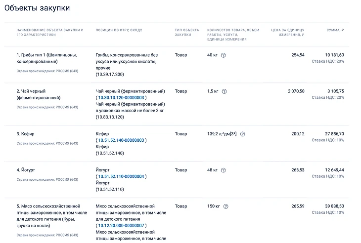 Если мы откроем информацию по закупке, то увидим, что грибов нужно «всего лишь» 40 кг.
