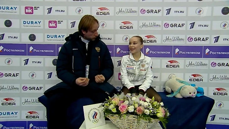 Плющенко был доволен: «Акселя – фантастика, сальхов – фантастика. Второй бы сальхов еще – и вообще было бы. Ну ничего-ничего, боец, умница. Вот боец».