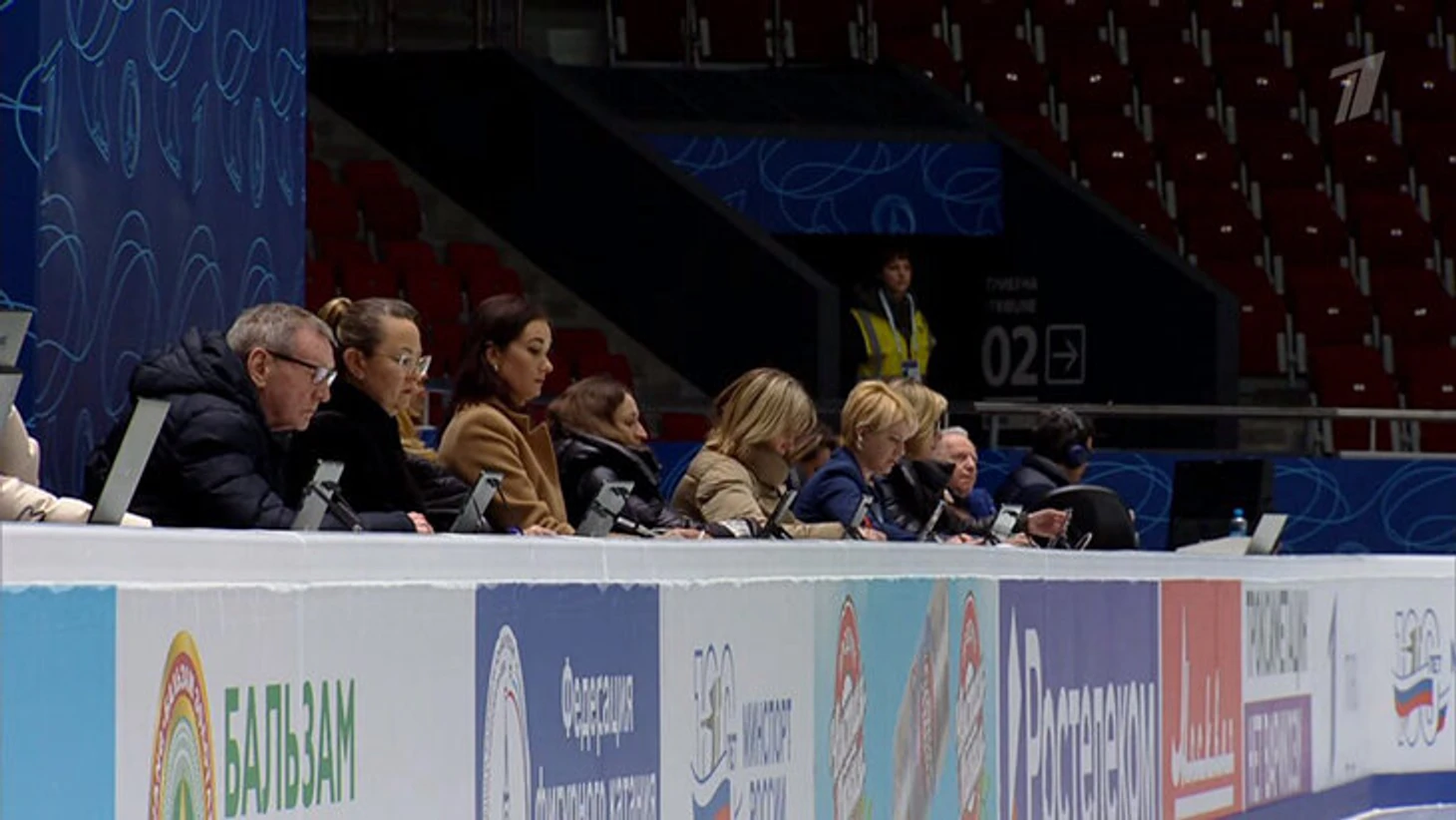 Через две минуты показали судей за мониторами, а комментатор Александр Гришин тем временем в эфире зачитывал информацию из протокола: у Титовой увидели несколько недокрутов, а еще ошибку на вращении.