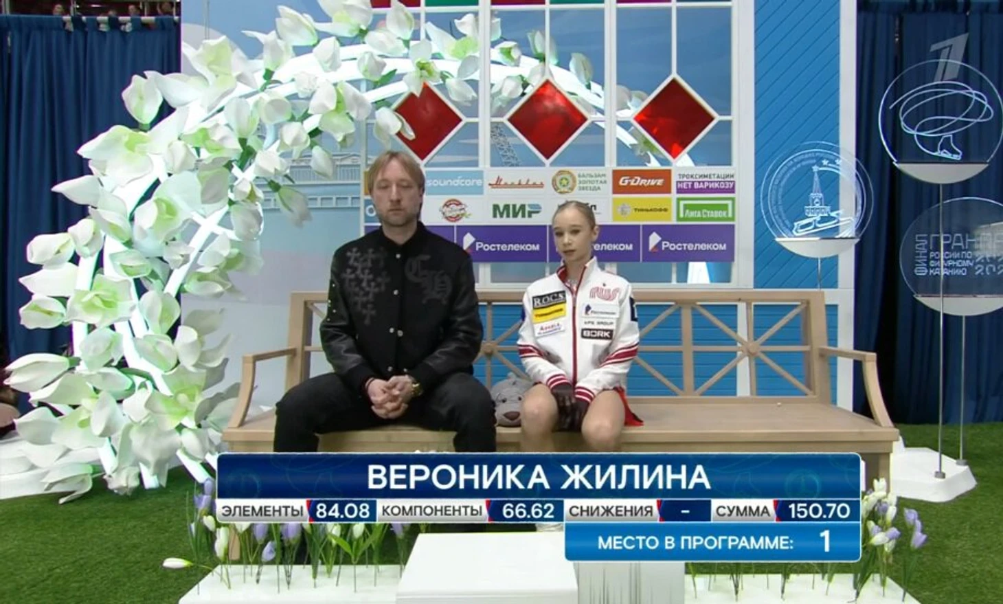 На оценки Жилиной Евгений смотрел с каменным лицом – кстати, в этот раз судьи сработали быстро. Баллы солидные – 150,70, и в итоге Вероника выиграла финал Гран-при.