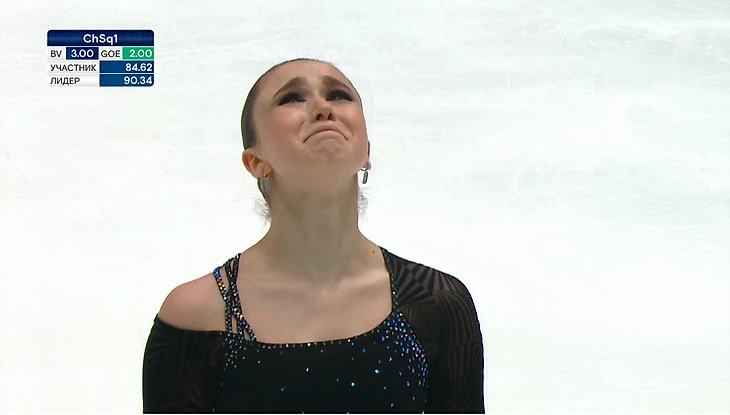 Слезы Валиевой после неудачной произвольной программы на Олимпиаде-2022 в Пекине.