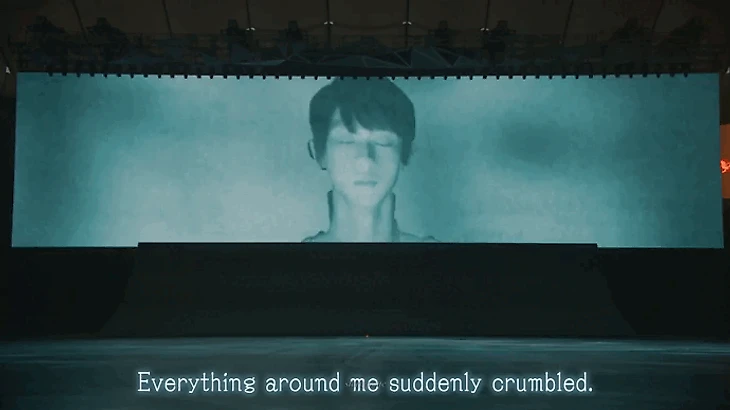Затем Персонаж рассказывает, что вокруг него все вдруг рассыпалось, что он напуган и думает, что потерял все важное для него, но потом свет с неба показывает ему, что ничего не исчезло. Мне показалось, что этот фрагмент отсылает к повлиявшему на Юзуру Великому восточно-японскому землетрясению, произошедшему 11 марта 2011 года. Тогда он сомневался в том, стоит ли продолжать кататься, есть ли от его катания какая-то польза для других людей и что вообще он может сделать. Ханю говорил, что в ночь после землетрясения звезды (к слову говоря, они упоминаются в начале следующего видеоролика) на небе были видны особенно ярко, и это звездное небо вселило в него надежду.