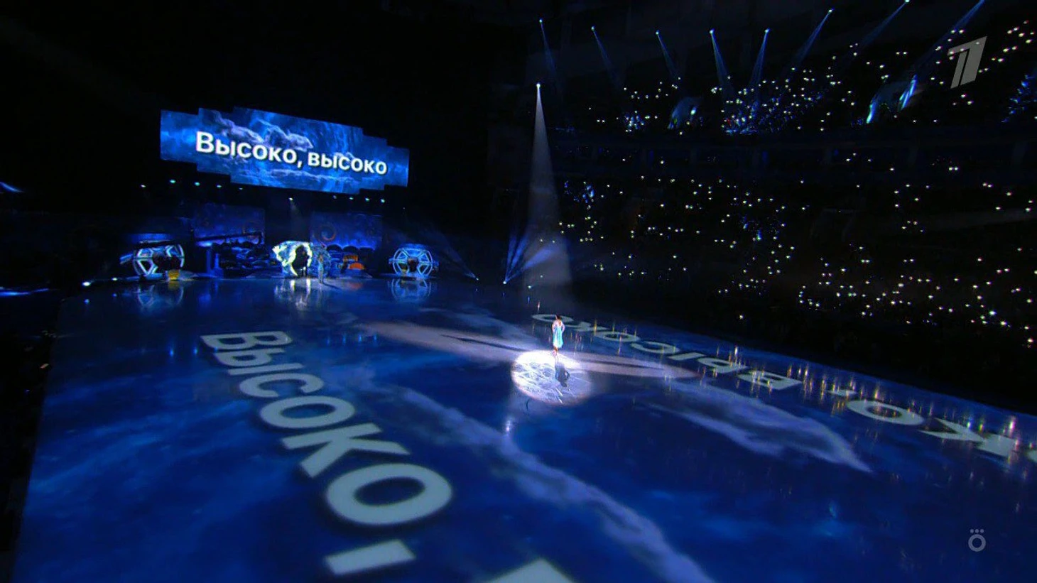 А затем на льду появилась певица Mia Boyka – она исполнила песню «Высоко». Во время припева на льду высветились слова – получилось такое караоке для зрителей.