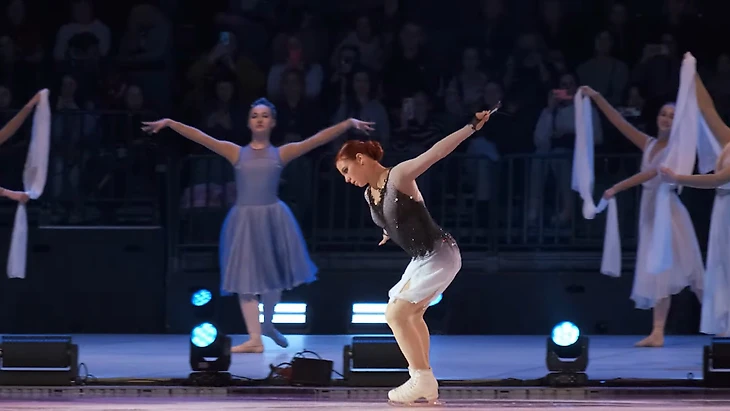 Часть арены переделана в театральную сцену, где во время номеров фигуристов выступают артисты балета.