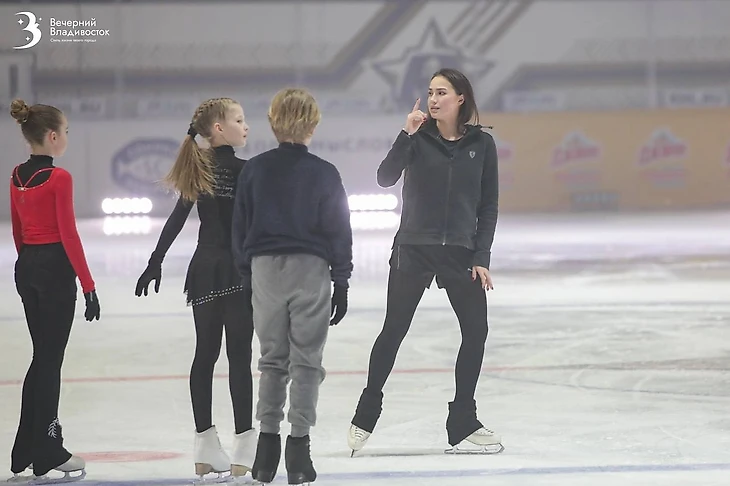 Ребята получили подсказки от олимпийской чемпионки Алины Загитовой на льду «Фетисов Арены». Фото: «Вечерний Владивосток».
