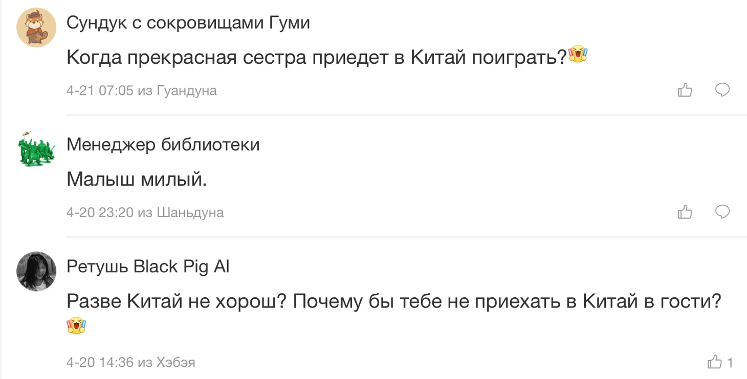 Подписчики Евгении всегда оставляют под ее постами множество милых комментариев, всегда говорят о том, как любят ее и что мечтают увидеть ее на шоу в Китае. Но самое милое – это сокращение сложной для китайского языка фамилии Медведева. Китайские поклонники сокращают фамилию Жени и называют ее "Meiwa" - 梅娃. Первый иероглиф 梅 обозначает цветение сливы –единственный цветок, цветущий зимой. Он означает элегантность, красоту и качество – никогда не сдаваться. Второй 娃 – это маленькая милая девочка.