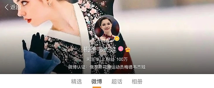Евгения Медведева покорила очередную высоту – число ее подписчиков в популярной китайской соцсети Вейбо превысило 1 миллион!