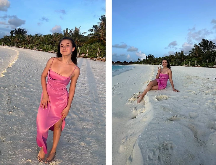 Камила Валиева тоже выбрала розовый цвет – но в купальнике не фотографировалась, зато похвасталась красивыми платьями.