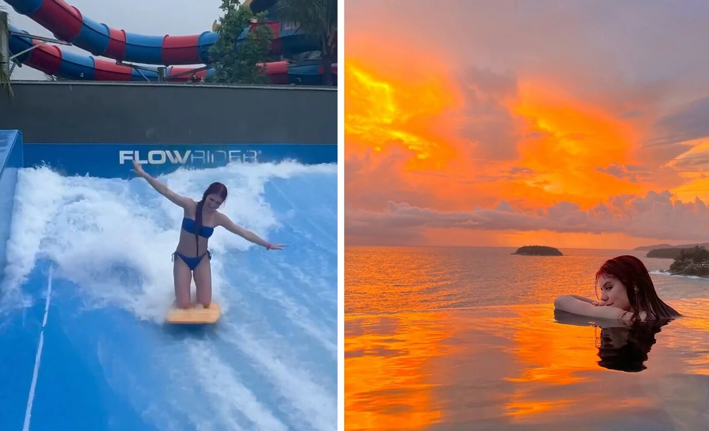 Ирина Хавронина отдыхает с новым партнером по дуэту – Девидом Нарижным. Для пляжного лука выбрала необычную модель.