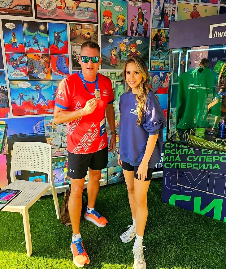 Движ в этом году создала букмекерская компания «Лига Ставок» - официальный партнер забега. Участники мероприятия были погружены в мир её вселенной «Лиги Супергероев» (https://m.ligastavok.ru/promo/comics): яркие инсталляции, всевозможные активности привлекали сотни любителей спорта к и без того популярной компании. Здесь и амбассадоры «Лиги Ставок», олимпийские чемпионы Алина Загитова и Артур Далалоян, провели разминку участников и создали неимоверный ажиотаж вокруг главного шатра «Лиги Ставок», раздавая автографы и фотографируясь со всеми желающими.