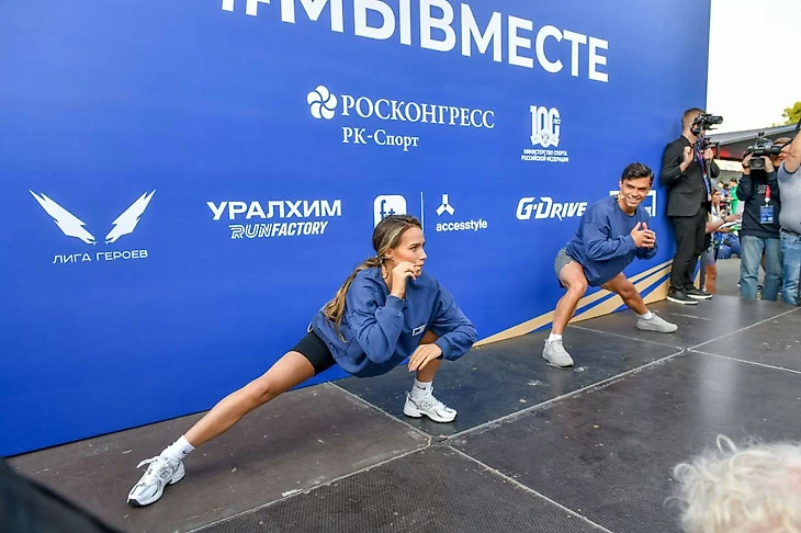 1. Разминка Алины Загитовой и Артура Далалоян перед стартом забега «Мы Вместе»