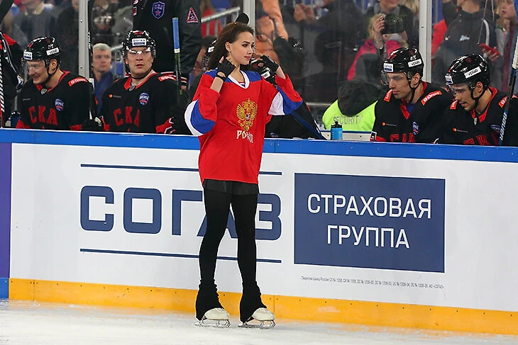 7. Отец Загитовой – хоккейный тренер, поэтому она не раз выходила на лед не в качестве фигуристки. А августе 2021-го еще и сыграла в благотворительном матче СКА. И даже забросила шайбу с передачи гендиректора клуба Романа Ротенберга.