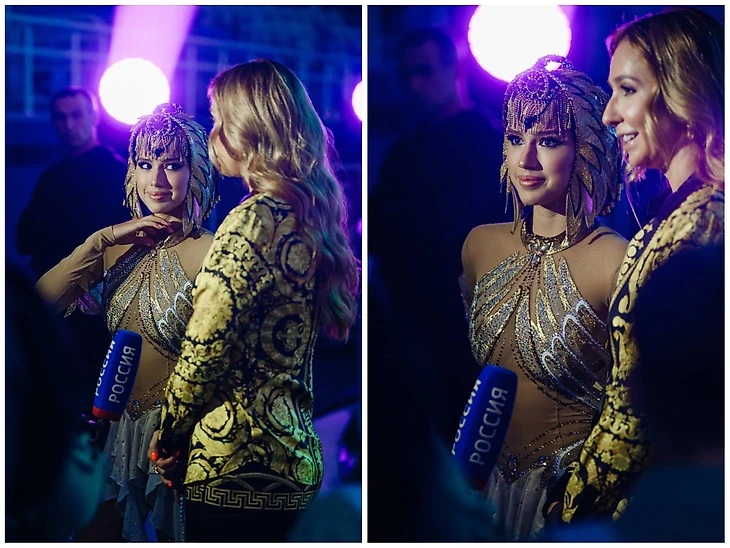 Перед премьерой шоу «История любви Шахерезады», которое начиналось чуть раньше, чем «Спящая красавица», Алина Загитова вместе с Татьяной Навкой дали небольшое интервью журналистам: