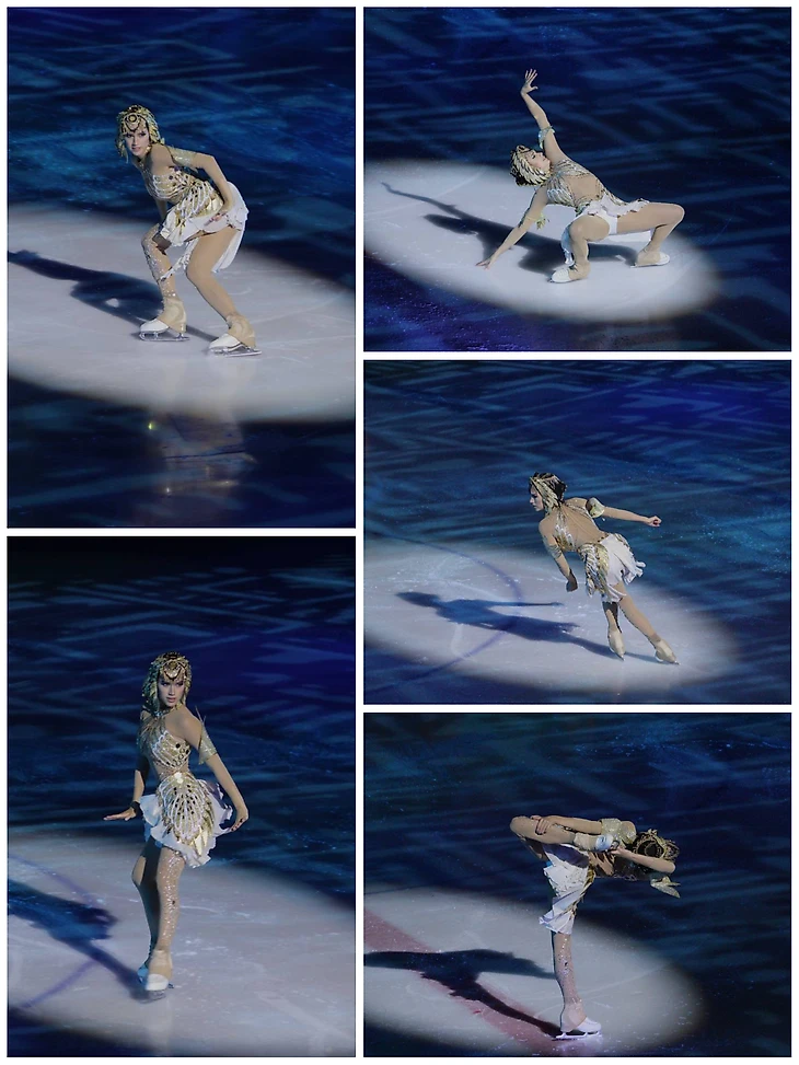 А мы просто любуемся ФК , все элементы ФК отточены и по ним можно учить детей . Сложнейшие вращения в одной точке , шпагаты, кораблики, либело, дорожки, связки ….Программы всегда были насыщенны элементами, так и ледовые спектакли Алины.