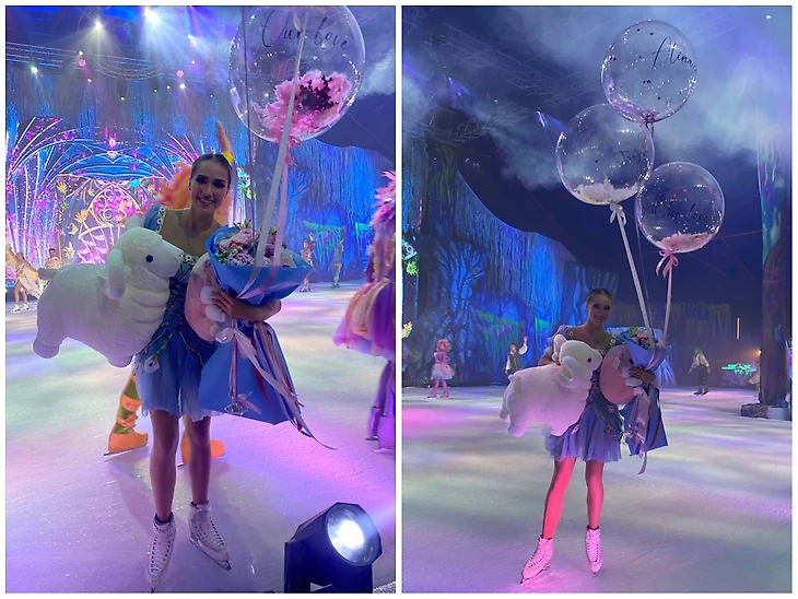 А мы, благодаря Валерии, как зрители сидящие в первых рядах в Ледовом театре. Столько замечательных фото. Алина счастливая, просто утонула в море цветов.