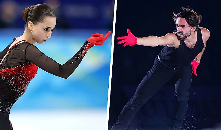 Яркие красные перчатки француза навевают воспоминания об олимпийской произвольной Камилы Валиевой, но в остальном программа Аймо – та же адаптация балета Мориса Бежара на льду.