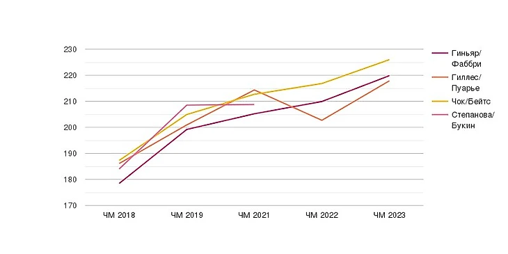 Таким образом, по большей части Синицина/Кацалапов боролись с Хаббелл/Донохью за места на пьедестале, а Чок/Бейтс со Степановой/Букиным за 4-5 строчки турнирных таблиц. После Игр в Пекине лидеры ушли, и, казалось бы, в новую погоню за олимпийскими наградами вступят вторые номер сборных России и США. Но из-за ограничений, наложенных на российских спортсменов, эта гонка за наградами стала несостоятельной. Что же сейчас на мировой арене?