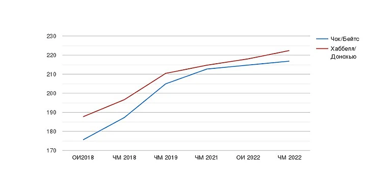 Если уже сейчас думать об Играх в Милане, то, конечно, хочется видеть там и наших спортсменов. Если все случится так, что Россию допустят до стартов хотя бы за год до игр, то у Степановой/Букина есть все шансы завоевать медаль. Однако если нас допускают в 26-ом, то, конечно, шансов у Саши с Ваней на призовое место мало: судьи за цикл забудут о том, кто это, и оценки вернутся все в те же нерушимые 80 баллов. Конечно, если объективно, Чок/Бейтс обойдут наших ребят (смотрим статистику), но Саша и Ваня однозначно сильнее итальянцев и примерно на одном уровне с канадцами, но тут нужно смотреть, как в дальнейшем себя будет чувствовать Пай пер. Тогда на основании статистики (и моих личных предпочтений) должно получиться что-то такое: