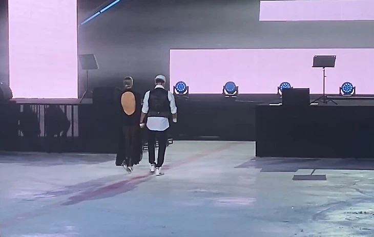 А на словах «я здесь, родная», появился Костомаров. По залу тут же раздались аплодисменты, зрители сразу встали.