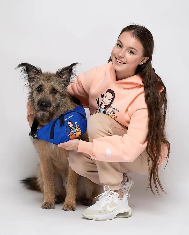 Анна Щербакова пошла по другому пути: делала мерч вместе с благотворительным фондом «Подарок судьбы». Фонд помогает собакам и кошкам – собирает пожертвования и проводит выставки. С одной из таких Анна забрала домой пса по кличке Мед.