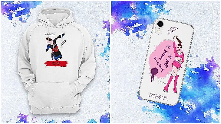Александра Трусова пока не обзавелась собственным онлайн-магазином, но вместе с российским брендом Katee’s Kids представила официальный мерч. С этой же фирмой сотрудничает Евгений Плющенко.