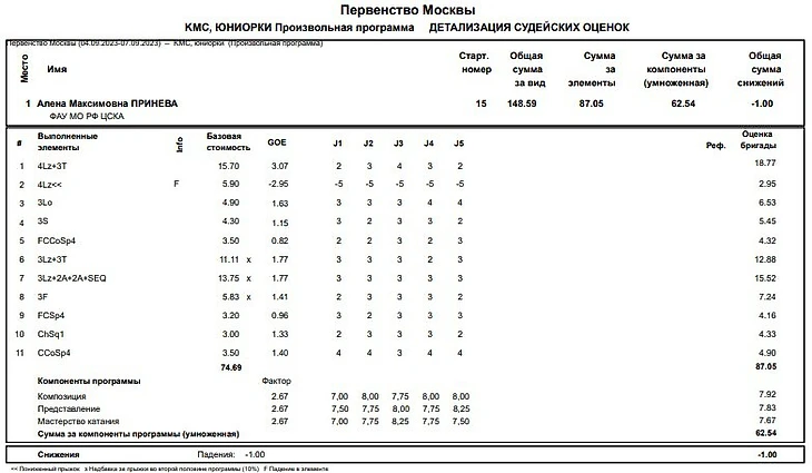 Не справилась только с сольным квад-лутцем: упала, а из-за недокрута базовая стоимость понизилась до тройного. Вот детальный протокол до изменений (после – можно посмотреть по ссылке):