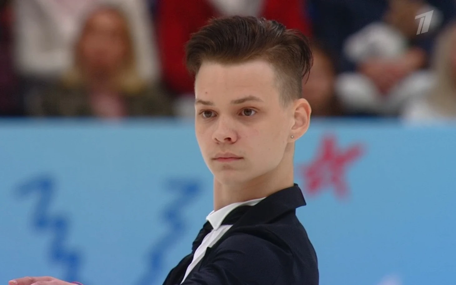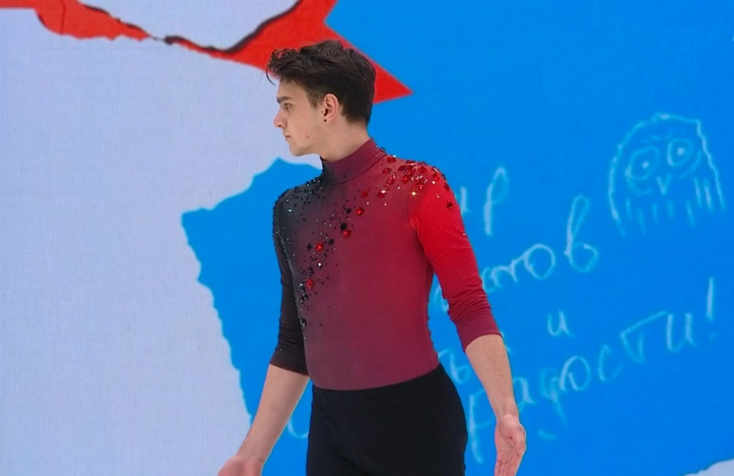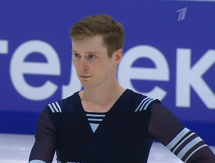 Александр Самарин зажег под «Яблочко» – даже костюм в стиле тельняшки! По контенту не все вышло – упал с четверного лутца.