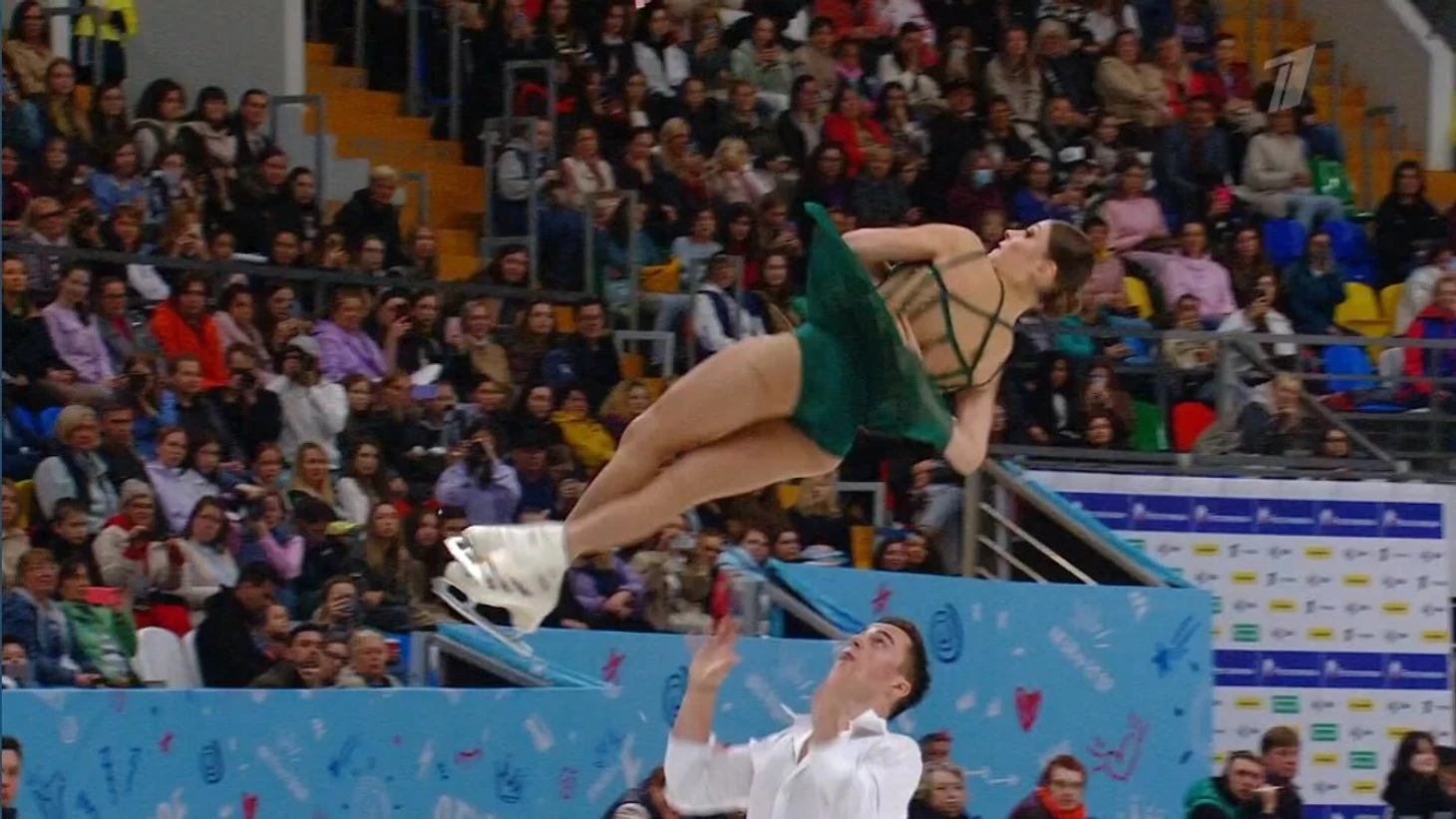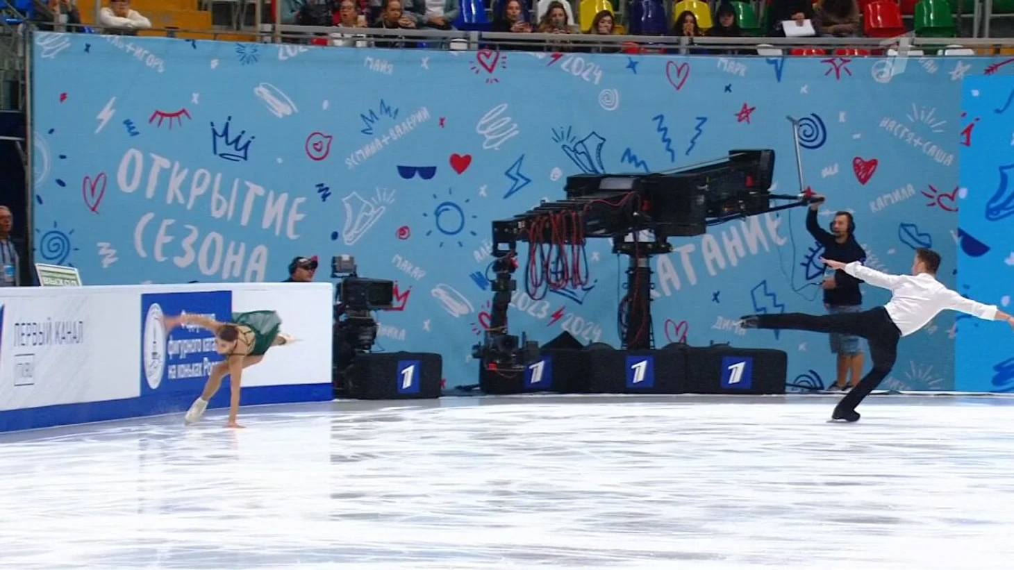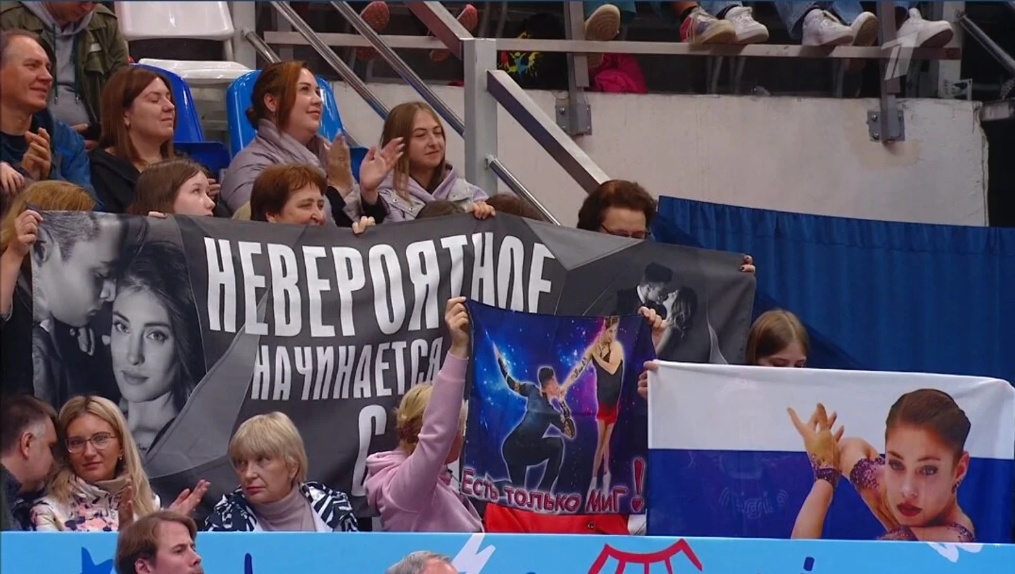 Зрители приветствовали пару Косторная – Куница куда громче чемпионов мира Мишину и Галлямова. Да и плакаты нового дуэта занимали больше места на трибунах.