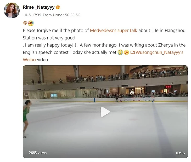 «Легкий дождь льет на мое сердце, и ты расцветаешь на льду». Китайские болельщики о встрече с Евгенией Медведевой