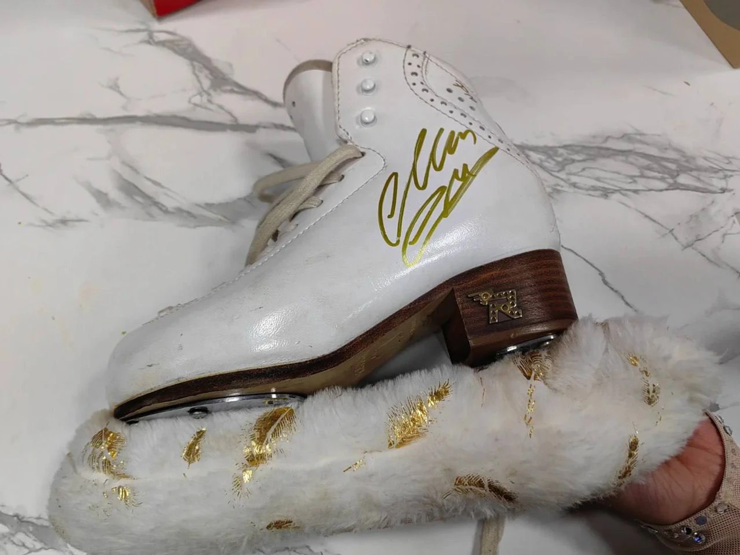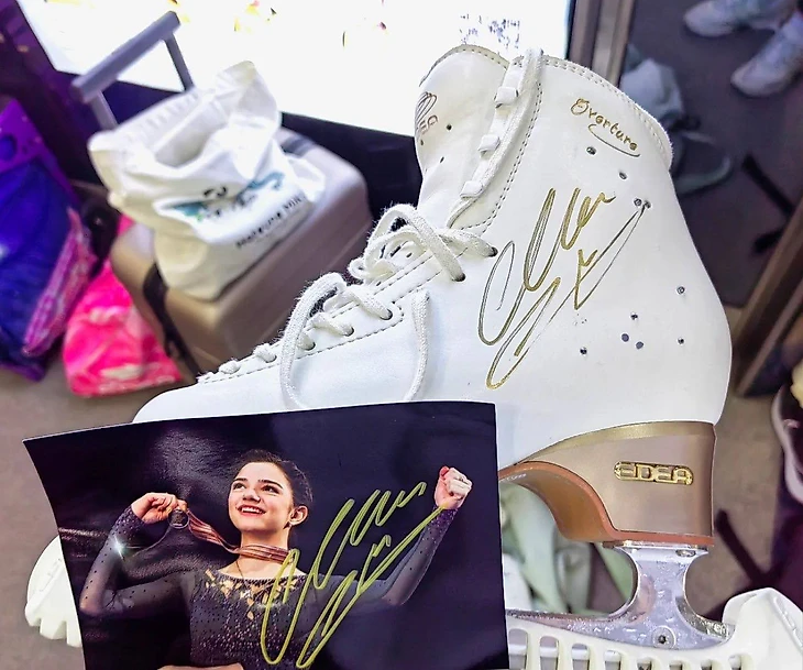 Мы пришли заранее, уже в 6 начали запускать. Можно было надеть коньки или специальные резиновые бахилы, в которых можно ходить по льду. Здесь уже была другая картина: у многих фанатов было что-то связанное с Женей: футболки, худи, сумочки, значки. Одна девочка сама сделала сумку с изображением Жени, кажется, она ей ее подарила. Примерно в 6.40 началось представление на льду. Нам сказали сесть на зрительские места, но никто никому ничего не запрещал, поэтому я не стала садиться, а просто прошла туда, где обычно стоят фотографы и тренеры. И это был просто джек-пот!!! Стоять рядом с бортиком, видеть, как пролетают фигуристы, чувствовать легкий холодок от арены, слышать глухой стук лезвий об лед, иметь возможность рассматривать каждую деталь костюма и касаться пальцами того самого бортика, за которым другой мир! Поневоле почувствуешь себя тренером! 😊 Или, на худой конец, волонтером, открывающим калитку. 😊