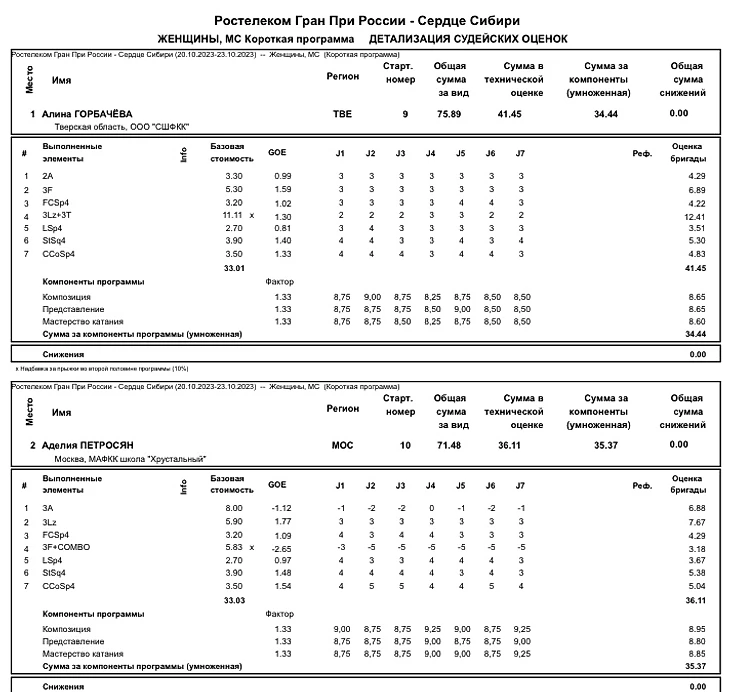 Короткая программа на Гран-При в Омске: камбек Косторной, лидерство Горбачевой и новый судейский скандал