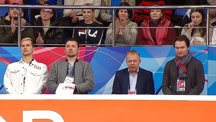В тулупе – Дима полная неожиданность для меня, потому что он тулупы вообще не срывает. Если Саша может где-то с ошибочкой сделать на тренировке, со степ-аутиком небольшим, то Дима всегда железобетонно делает. Теперь Дима не будет у нас отлынивать от дополнительной работы над прыжками».